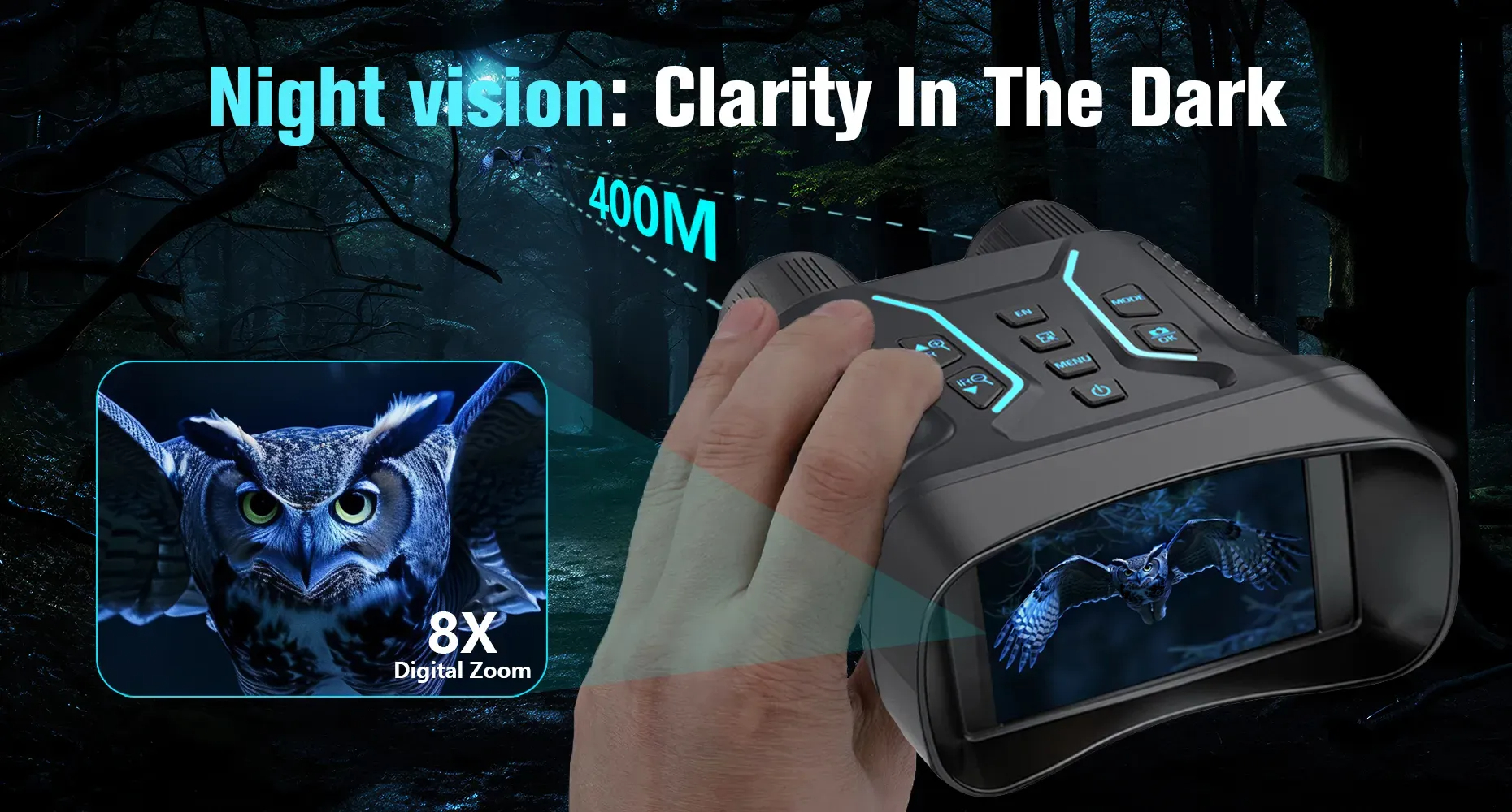 With our powerful 850NM IR light and advanced lens system, you'll be able to see up to 1312FT (400M) even in total darkness. Plus, the starlight CMOS sensor helps you enjoy clear and limitless visibility in low-light settings. Plus, the 8X digital zoom lets you bring distant objects closer, making it perfect for watching wildlife or capturing detailed photos and videos.