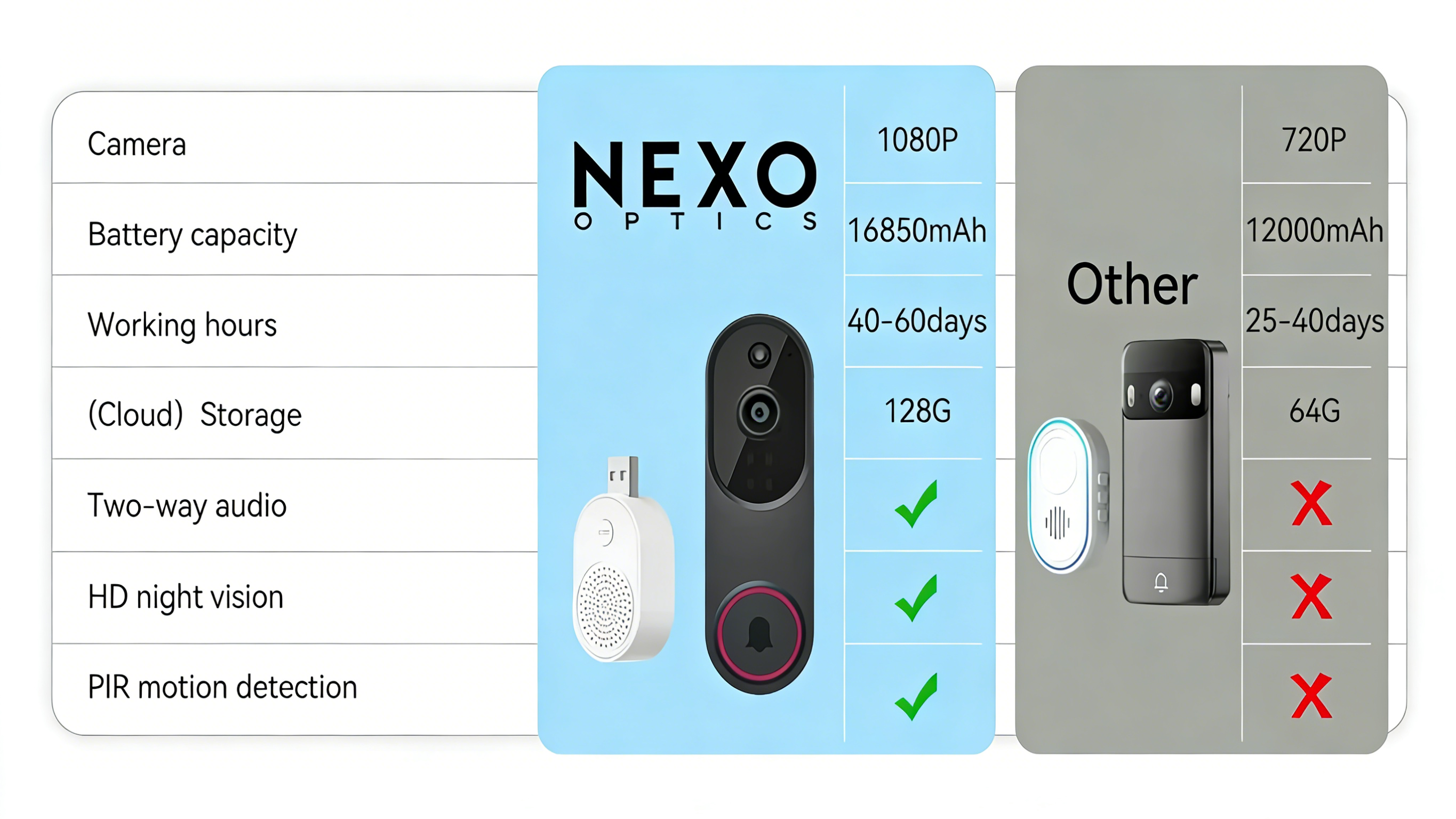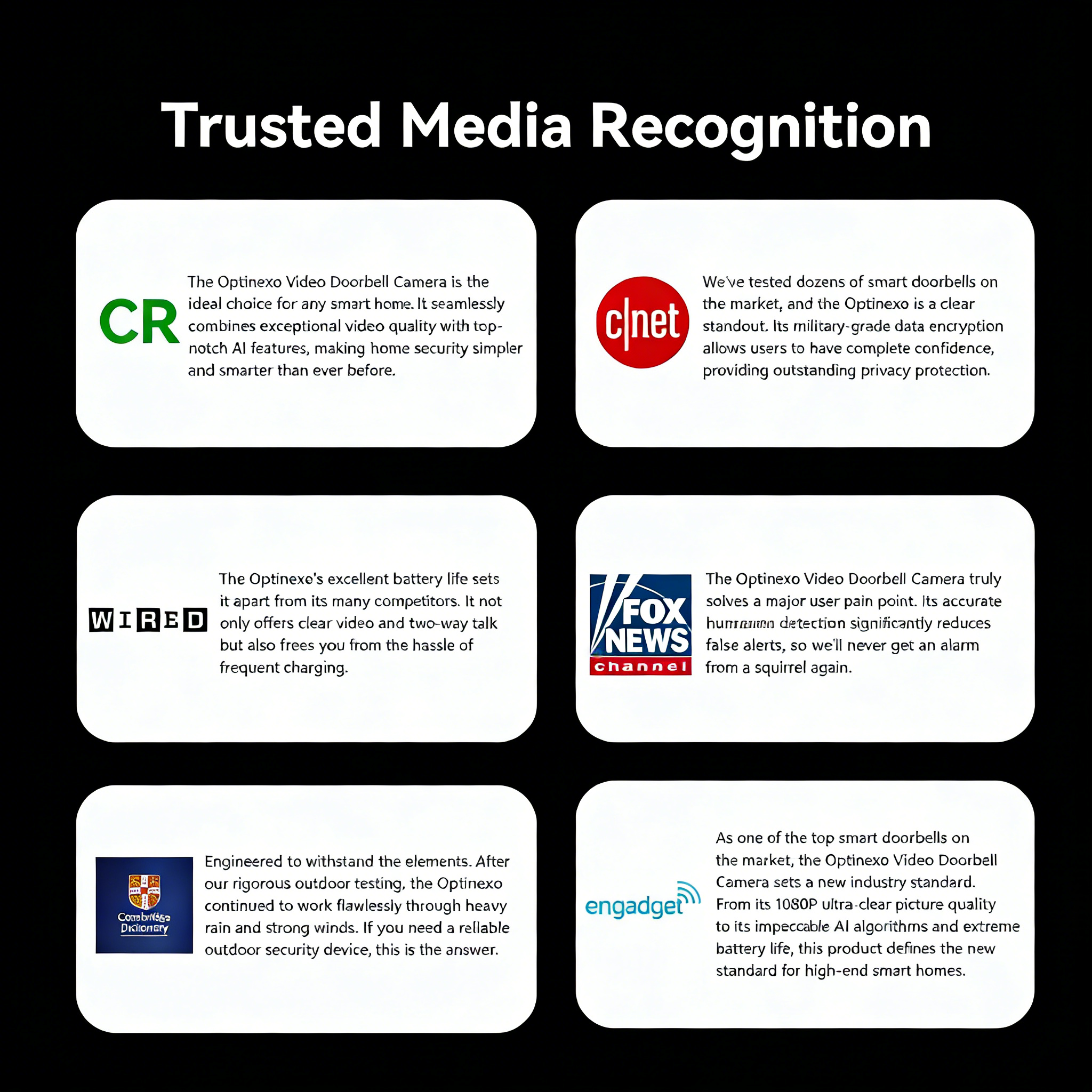 The Optinexo Video Doorbell Camera was the result. With advanced AI detection and HD night vision, it ensures your home is reliably protected, day and night. Optinexo's core mission is to never let you down and to always keep your family safe.